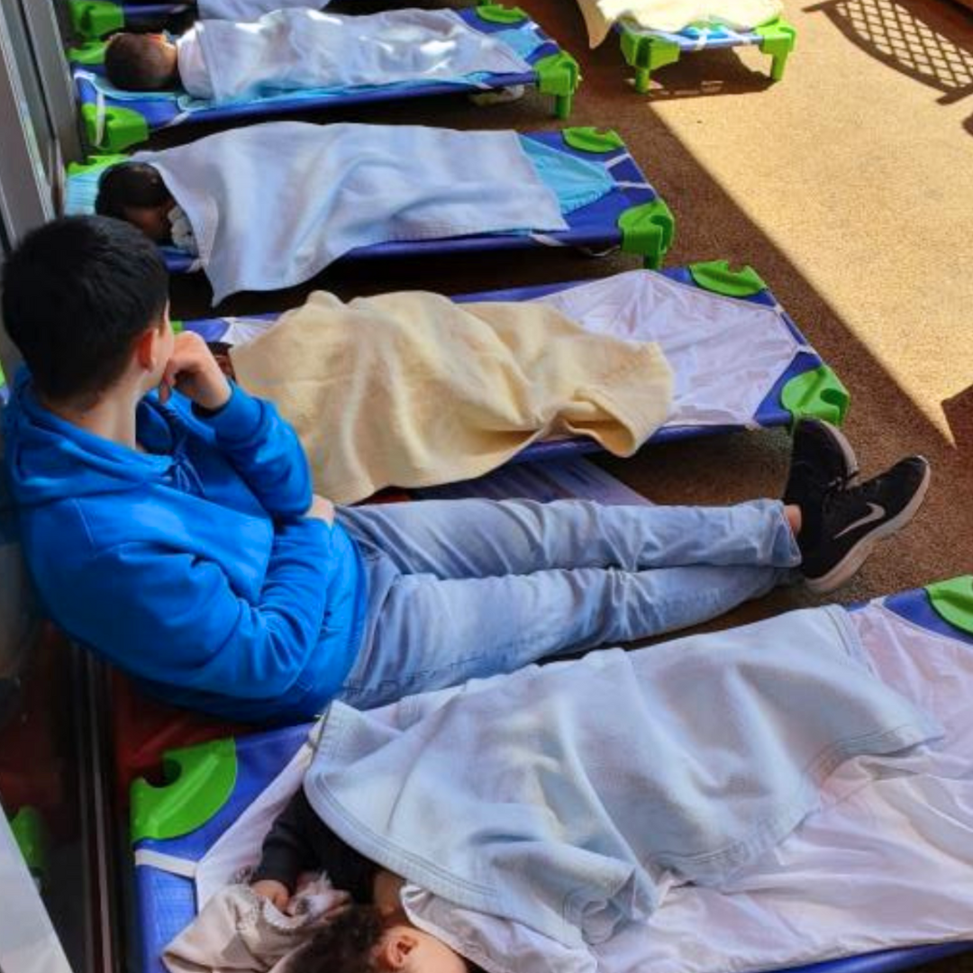 Les plus petits dorment selon leur propre rythme, tandis que les plus grands partagent généralement une sieste collective en début d’après-midi.
